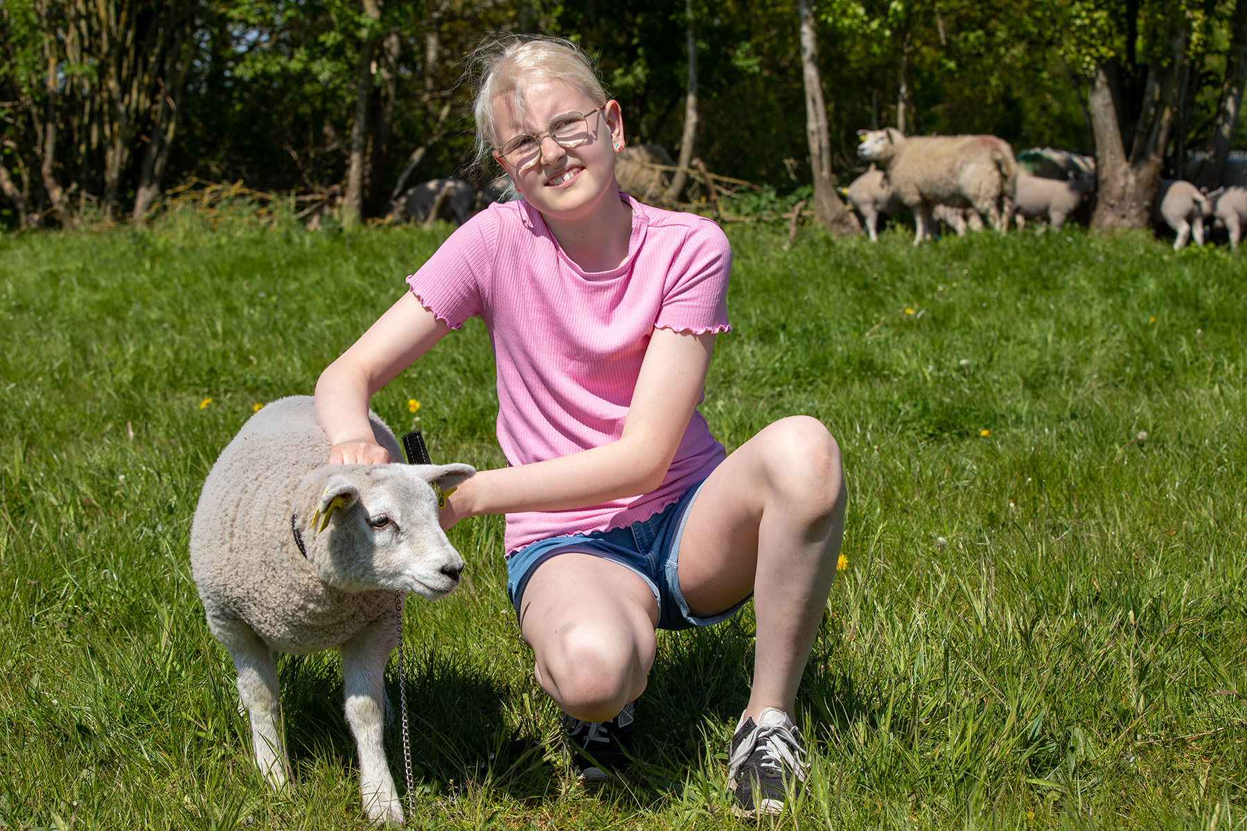 For Johanne Nielsen er lammet Klara, af fåreracen Texel, en sand ven som altid er klar når hun kikker ind til det på farfars gård i Skringstrup, som ligger mellem Skals og Bjerregrav. Hun fortæller at hun har været med på mange dyrskuer allerede og nu glæder hun sig til at skulle udstille selv for første gang.